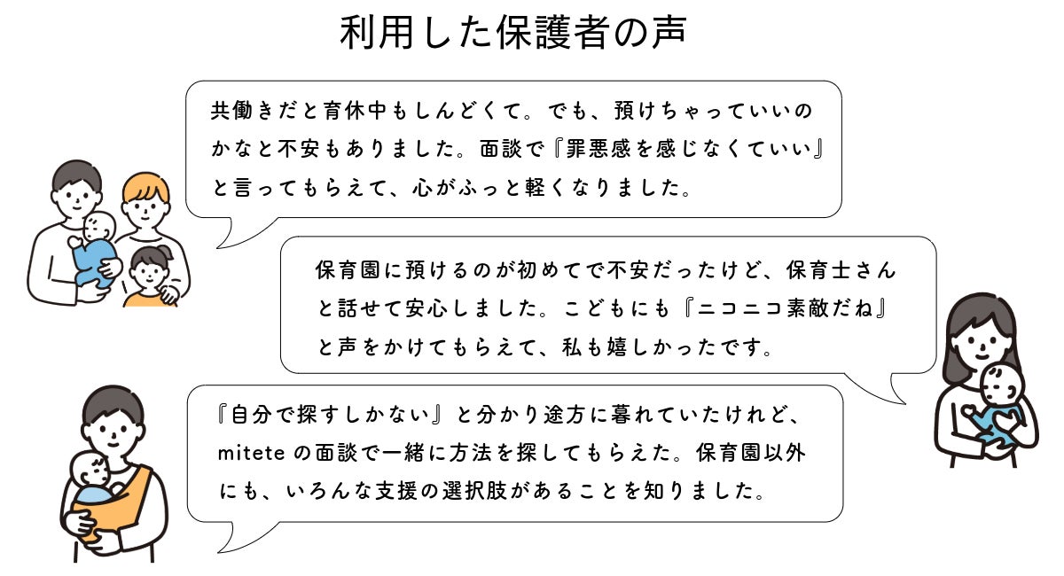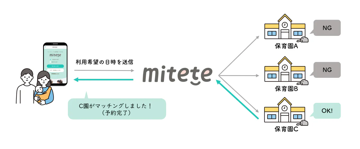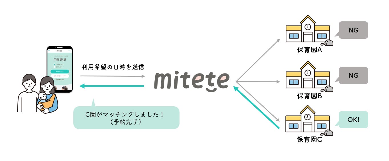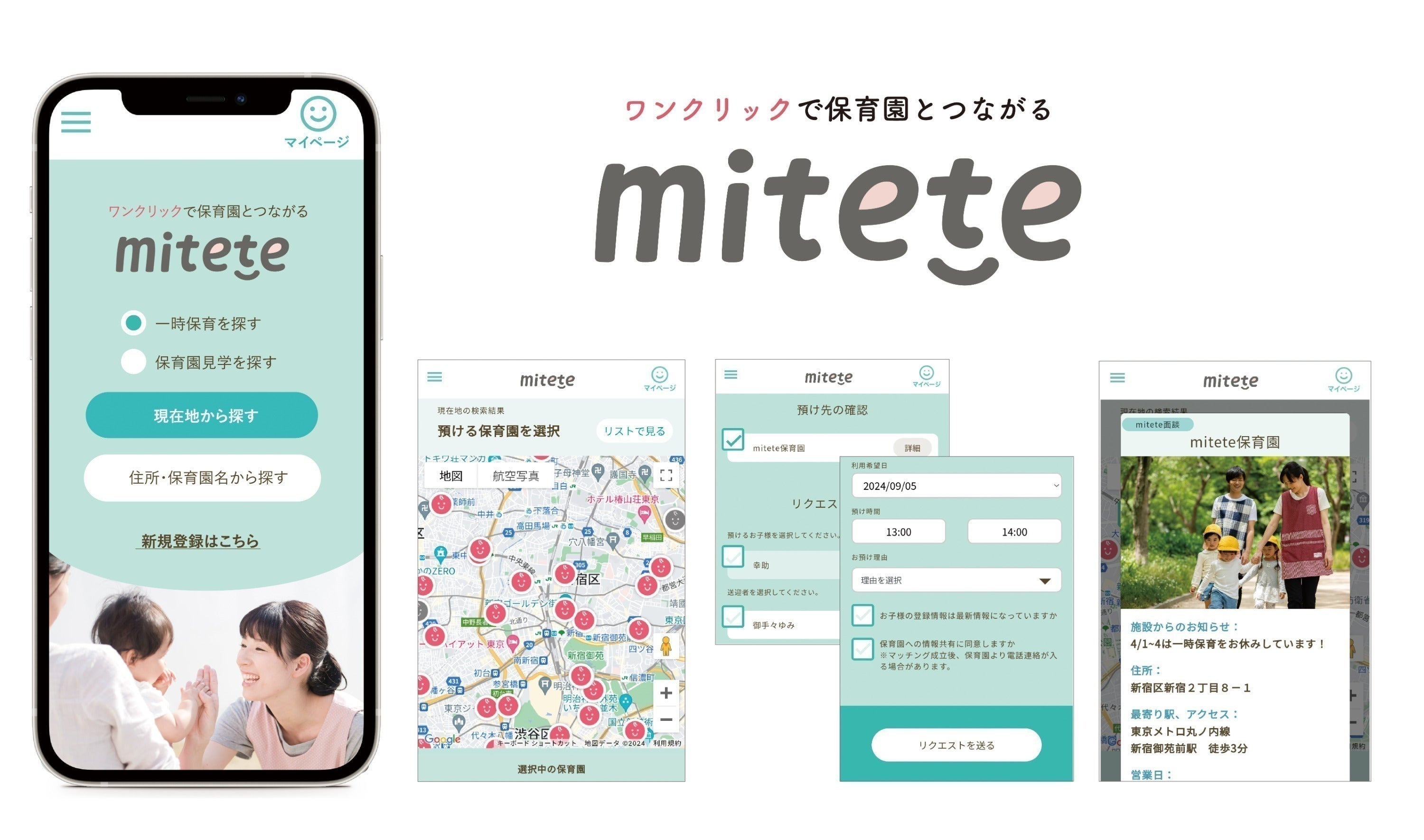「ちょっと“みてて”」という保護者の声に応える仕組みとして、一時保育のマッチングサービス mitete は誕生しました。