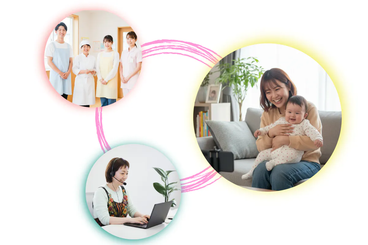 面談を通じて保護者が抱える悩みや状況を伺い、病児保育、産前産後ケア、ベビーシッター、地域の活動やコミュニティなど、より幅広い支援へつなげる“ハブ”として機能させていきます。