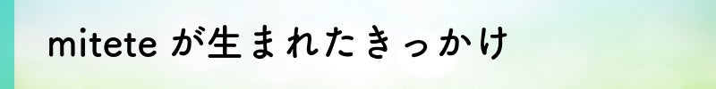 「ここにもmiteteがあってよかった」 そう思ってもらえる家庭を、全国に増やしていきたいのです。