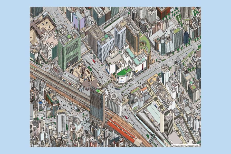 「鳥瞰図」は遠近法がない描き方をするので、どの建物も主役。