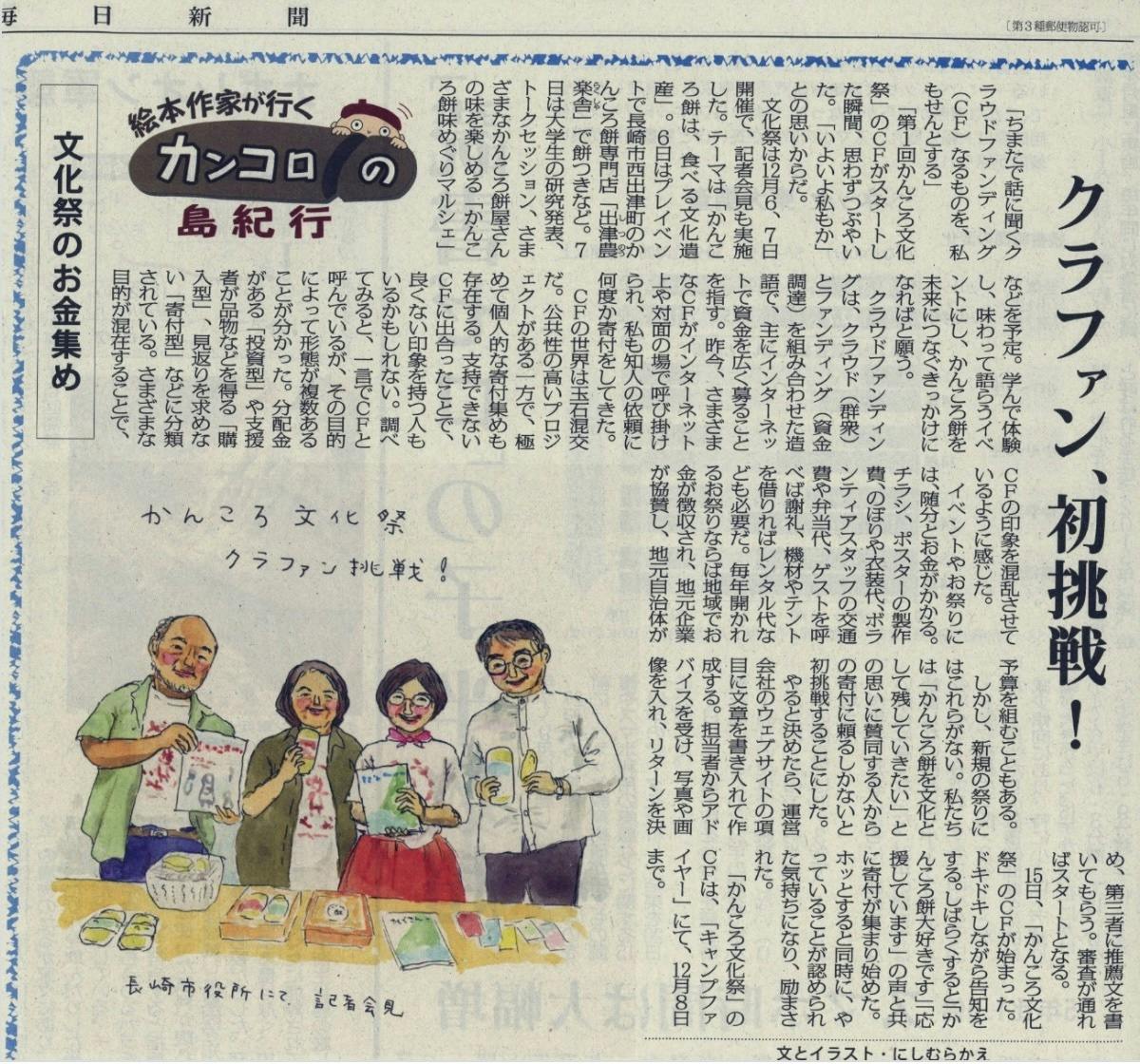 クラファン初挑戦のことを毎日新聞の連載(かんころ島紀行)で紹介させていただきました。