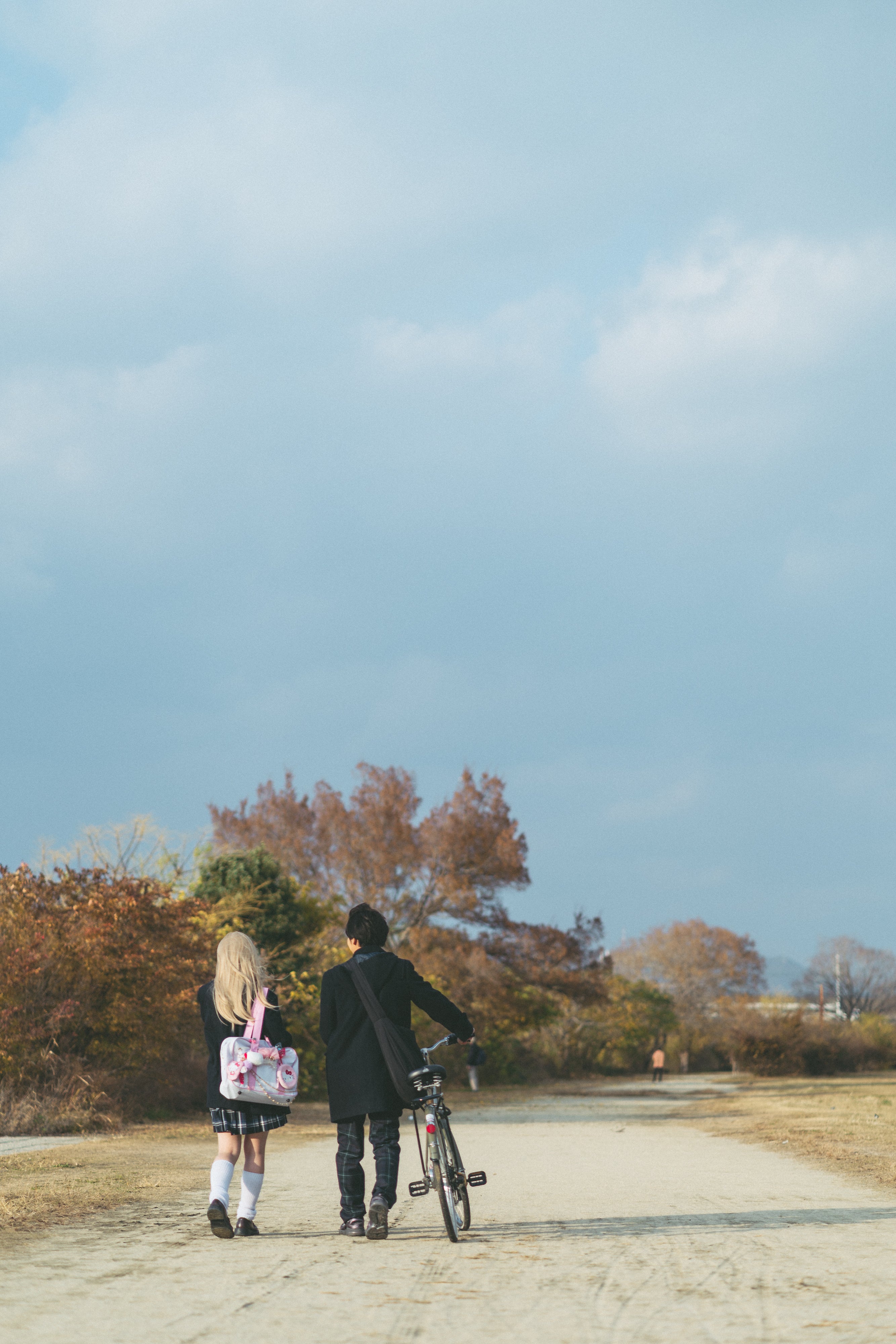 AとBが歩いて喋っている。