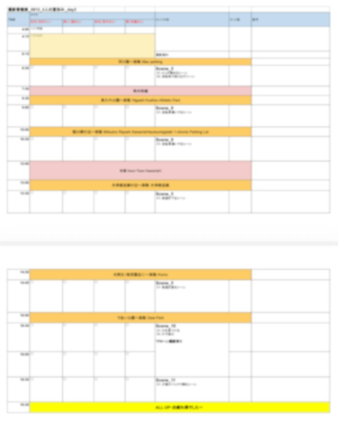 この、実際に使った香盤表を今、見返しながら・・。