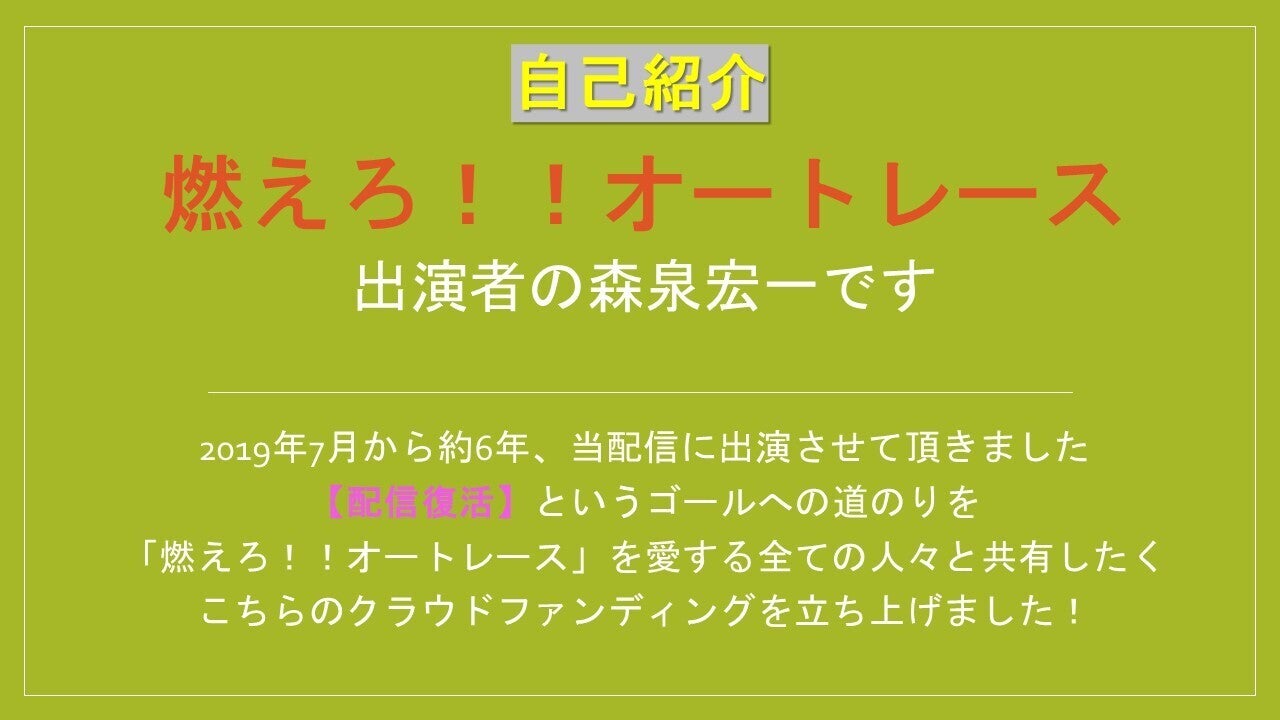 「燃えろ!!オートレース」は、オートレースを知るきっかけとして、こんなにも心躍るオートレースの存在を、リスナーの方は勿論の事、まだオートレースを詳しく知らない方にも、配信を通し体感して欲しいと思っています。