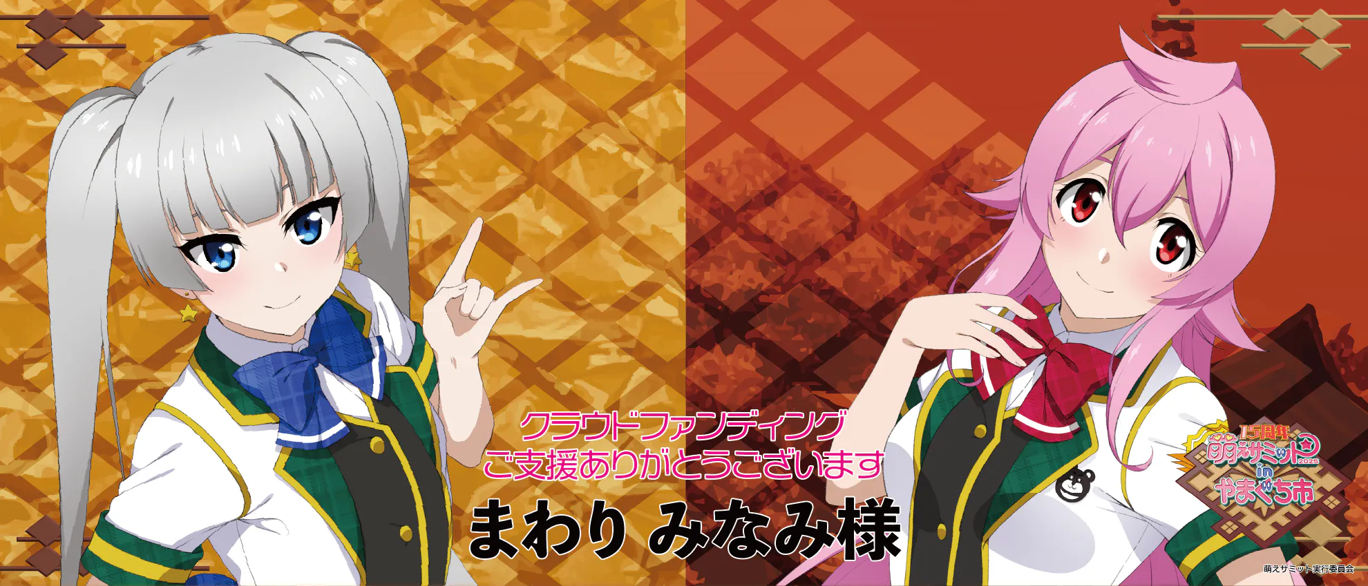 ピンクの髪のほうがわたし、ツインテールのほうがまつちゃんになります。 今年も萌えサミットのクラウドファンディング……略して萌えサミファンディングの進行役をさせていただきます!!
