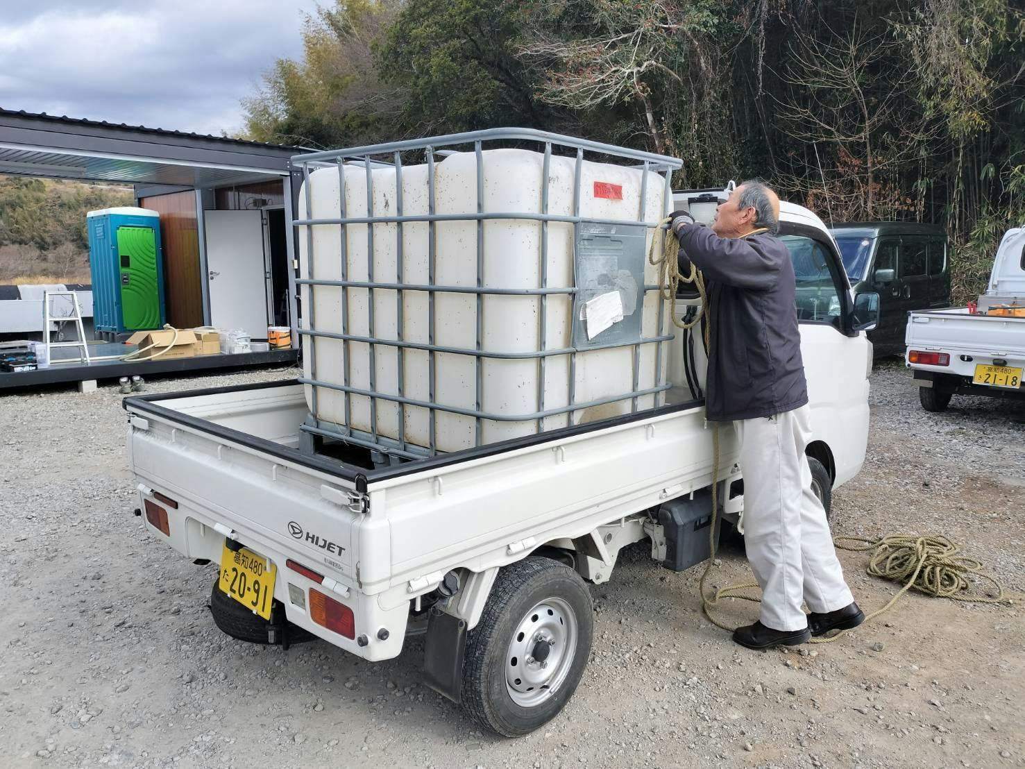 排水システムを作るために、中古のIBCタンクを探す「スカベンジャーハント(宝探し)」のようなことをしていましたが、ようやく高知県内で必要な5つを見つけることができました。現在はまだ1つ目を回収したところですが、一歩前進です。