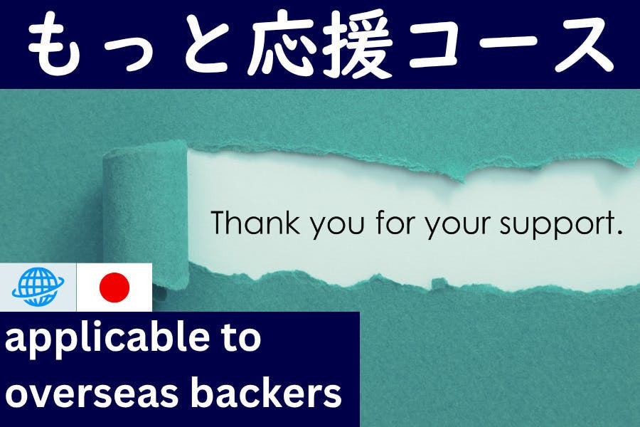 ありがたいことに、海外から支援したいというお声もいただいております。その方たちのために、海外からの支援にも対応できるリターンをご用意しました。それらの画像には日本国旗のマークとともに、青い地球のマークをつけています。また、本ページの英語訳、動画の英語字幕版は弊社のウェブサイトで公開予定です。