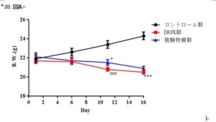 - 即ち、被験物質を服用することで抗がん剤による体重の減少スピードが緩やかになっていることが示唆されました。