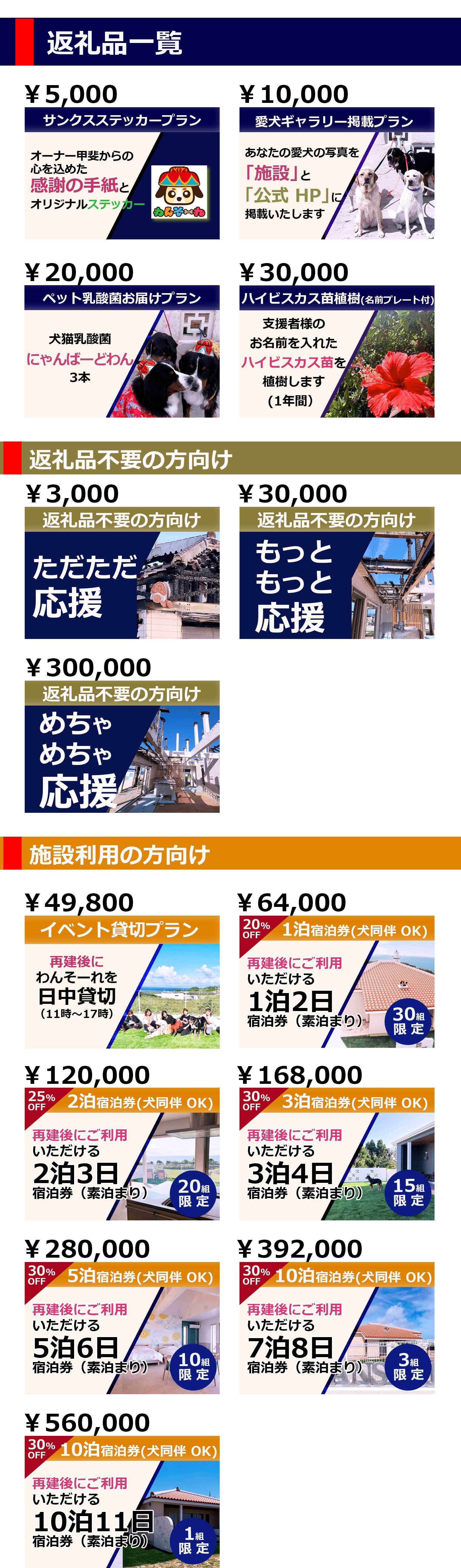 今回のクラウドファンディングで頂いたご支援は、「わんそーれおきなわ古宇利島」の再建と営業再開のため に利用させていただきたいと思っております。
