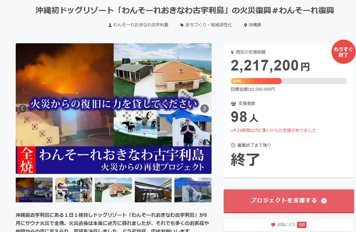 僕が想像もできないほどに落ち込んだであろう賢吾さんが「わんそーれおきなわ古宇利島」の再建を決意しクラファンに挑戦します!