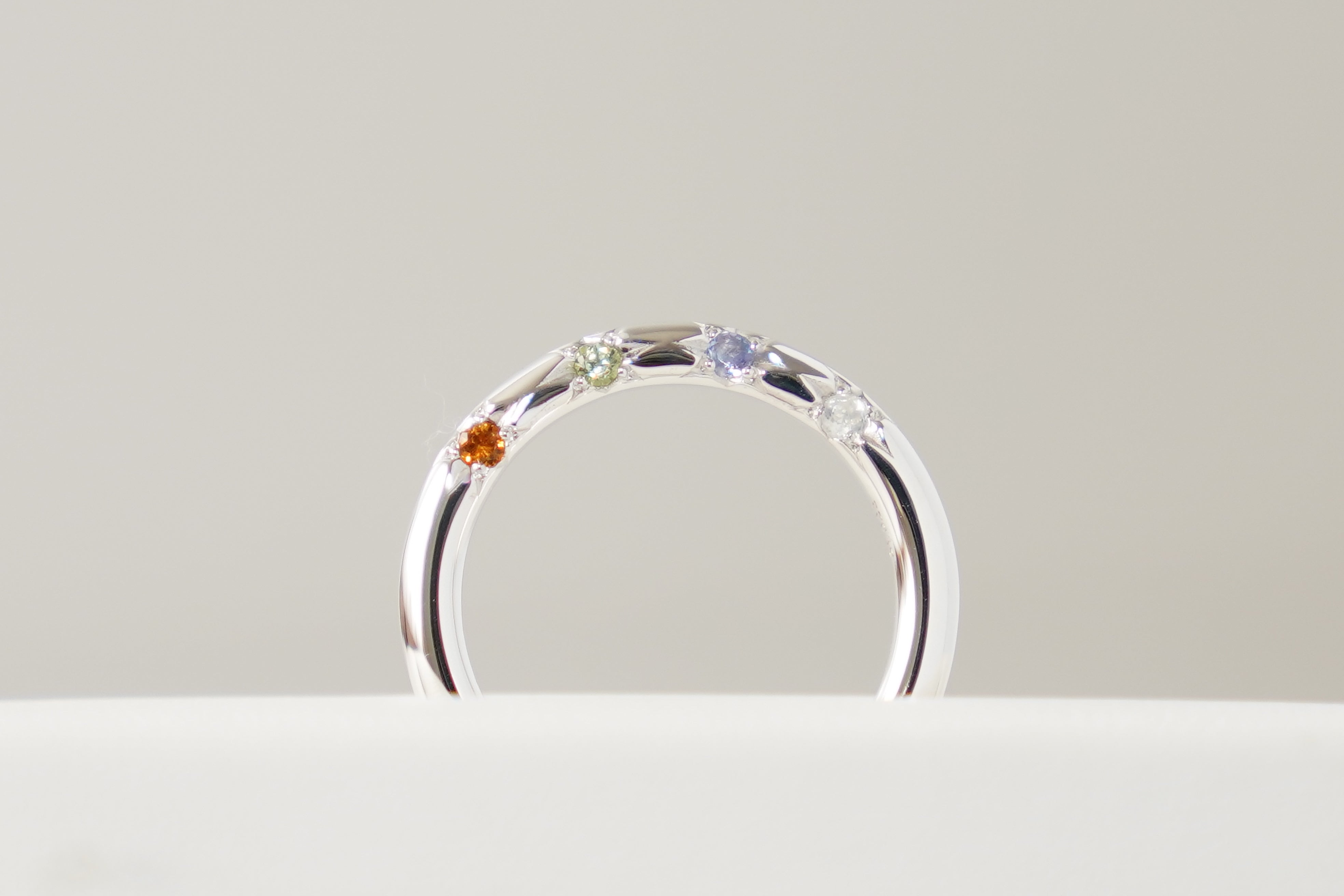 本プロジェクトでしかお求めいただくことが出来ない『4石デザイン』。17種類の誕生石を組み合わせることによってご自身の想いを込めた唯一の自分だけのリングを作ることが出来ます。