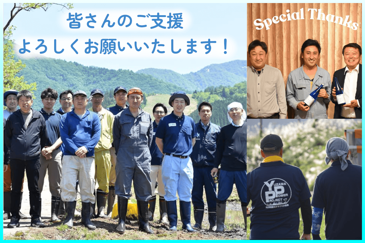 私たちは、このクラファンを単なる資金調達とは思っていません。純米吟醸「湯沢」と「さくらファーム湯沢」のことを多くの人に知ってもらい、ファンになってほしいと思っています。ファンの方々と一緒に酒造りとコメ作りをやりたい。それが私たちの思いです。
