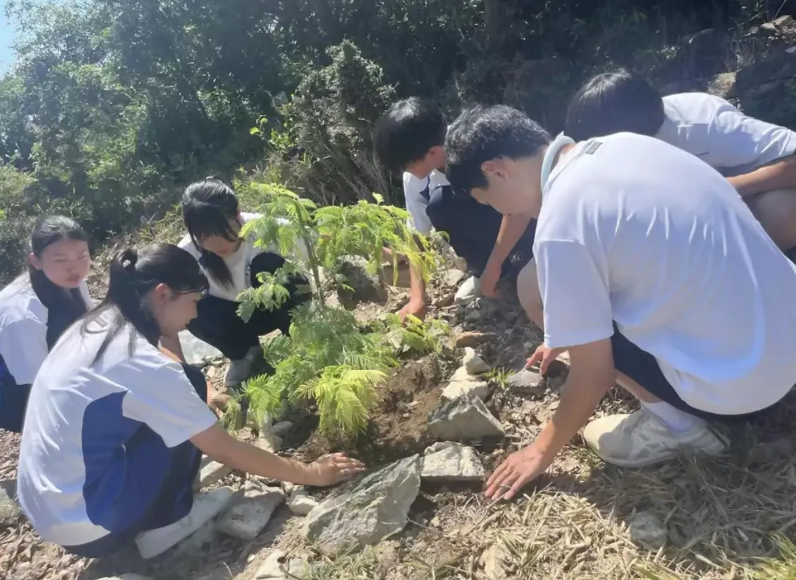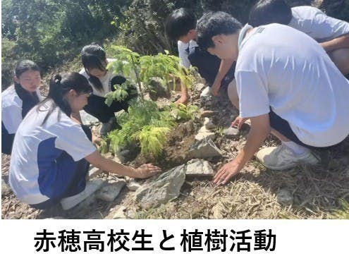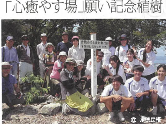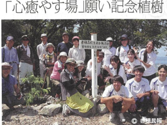 そんな中、活動に賛同する地元赤穂高校の生徒会の生徒さんたちが、自分たちの募金活動で集めたお金を寄付してくれる一幕も!8月19日にはその寄付の一部を使って、向山山頂に標柱設置と植樹を行いました。