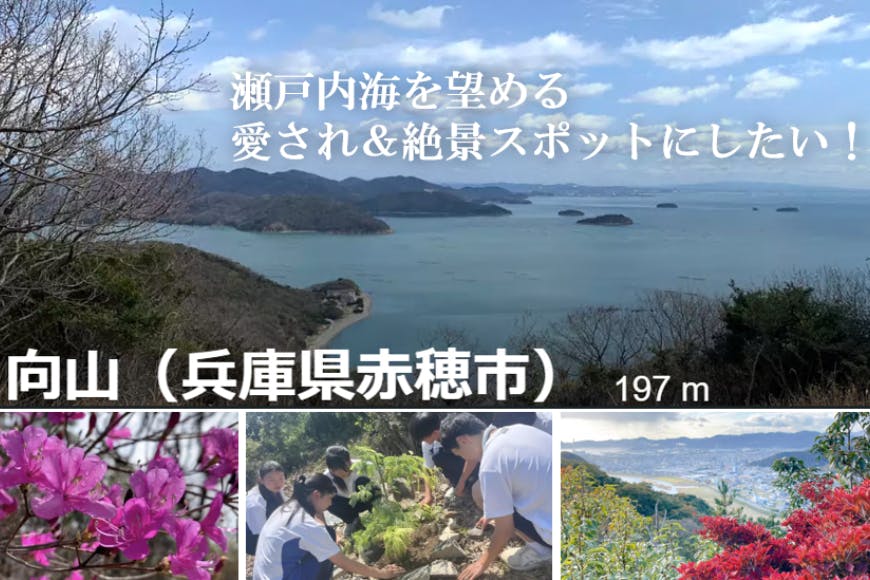 赤穂市尾崎の向山は私たち地元の財産だけではなく、瀬戸内海沿岸の環境を守り、遠方より来ていただいた皆様にリラックスしていただける場所にしていきたいと考えています。