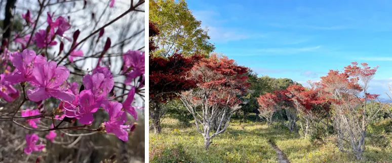 山頂からは2方向に瀬戸内海が眺められ、青い海とドウダンツツジの可憐な白い花(春)、紅葉(秋)の組み合わせはまさに絶景です。また尾根伝いに御崎の唐船山→向山→坂越(さこし)方面へとつながるコースは「坂越アルプス」と呼ばれ親しまれています。