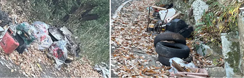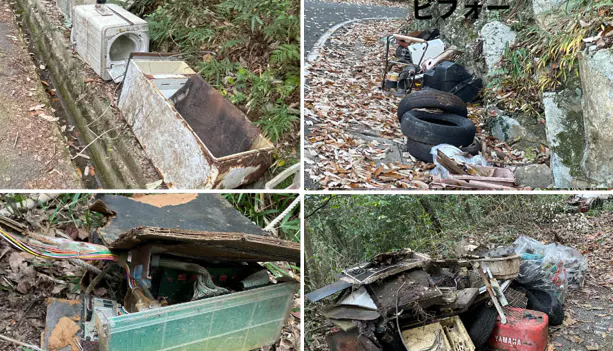 可燃ごみ、タイヤ、家電製品など信じられないほどの量が…。