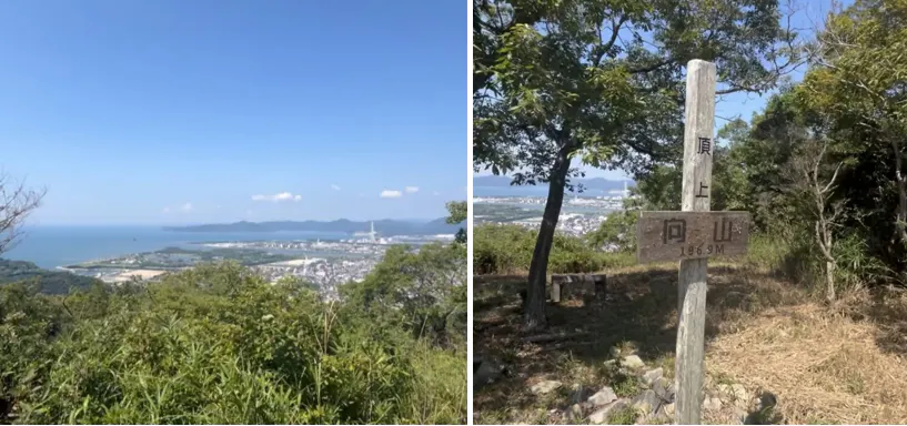 向山は標高197m。頂上から東に瀬戸内海、西に市街地を一望でき、複数の登山ルートを気軽に登れるハイキングコースです。登山道は地元の有志が、山頂ルートの草刈りや清掃活動などのボランティア活動をされてきました。