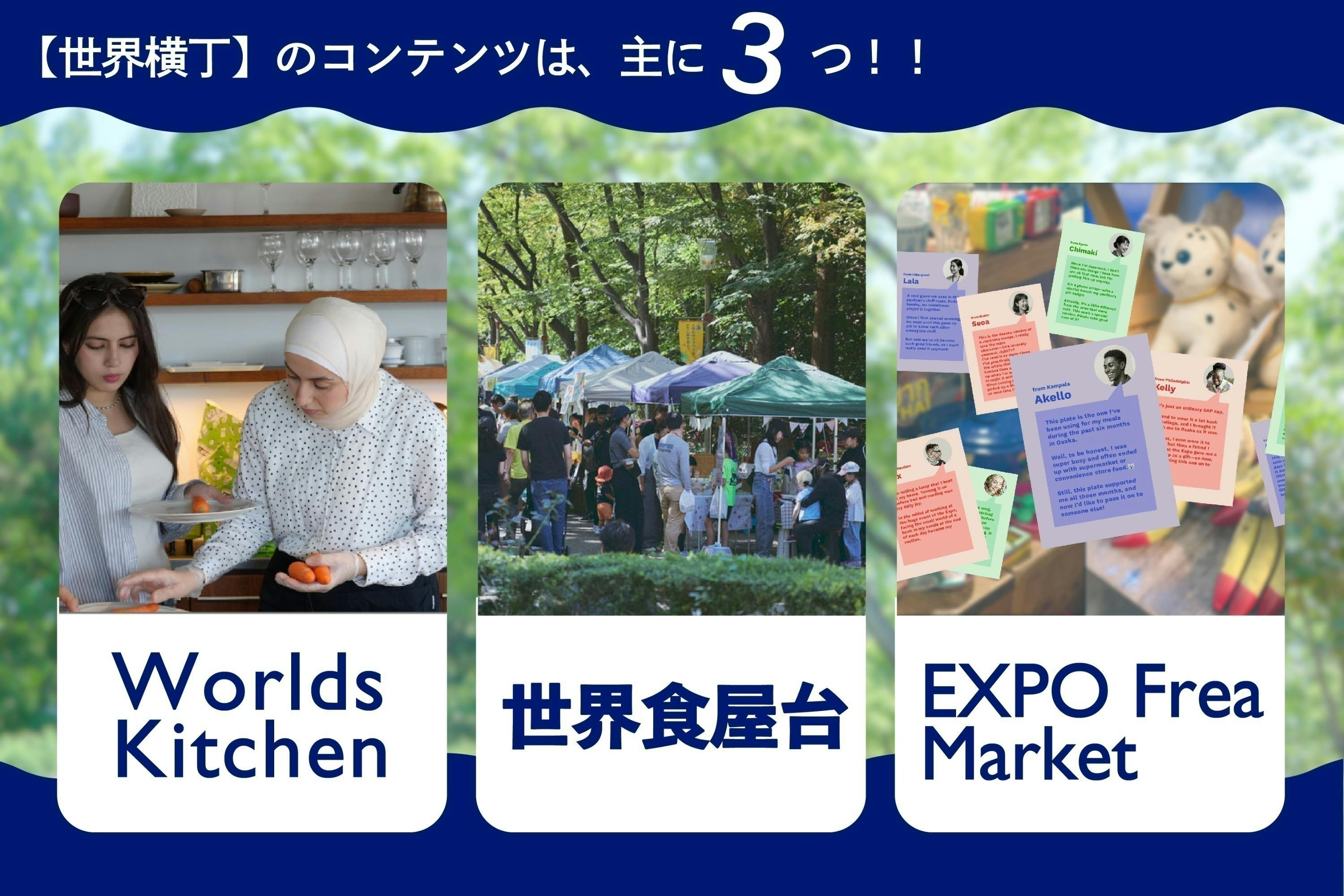 「世界横丁」とは、わたしたちが万博で築いた100カ国以上とのつながりを、街の真ん中に持ち込む試み。