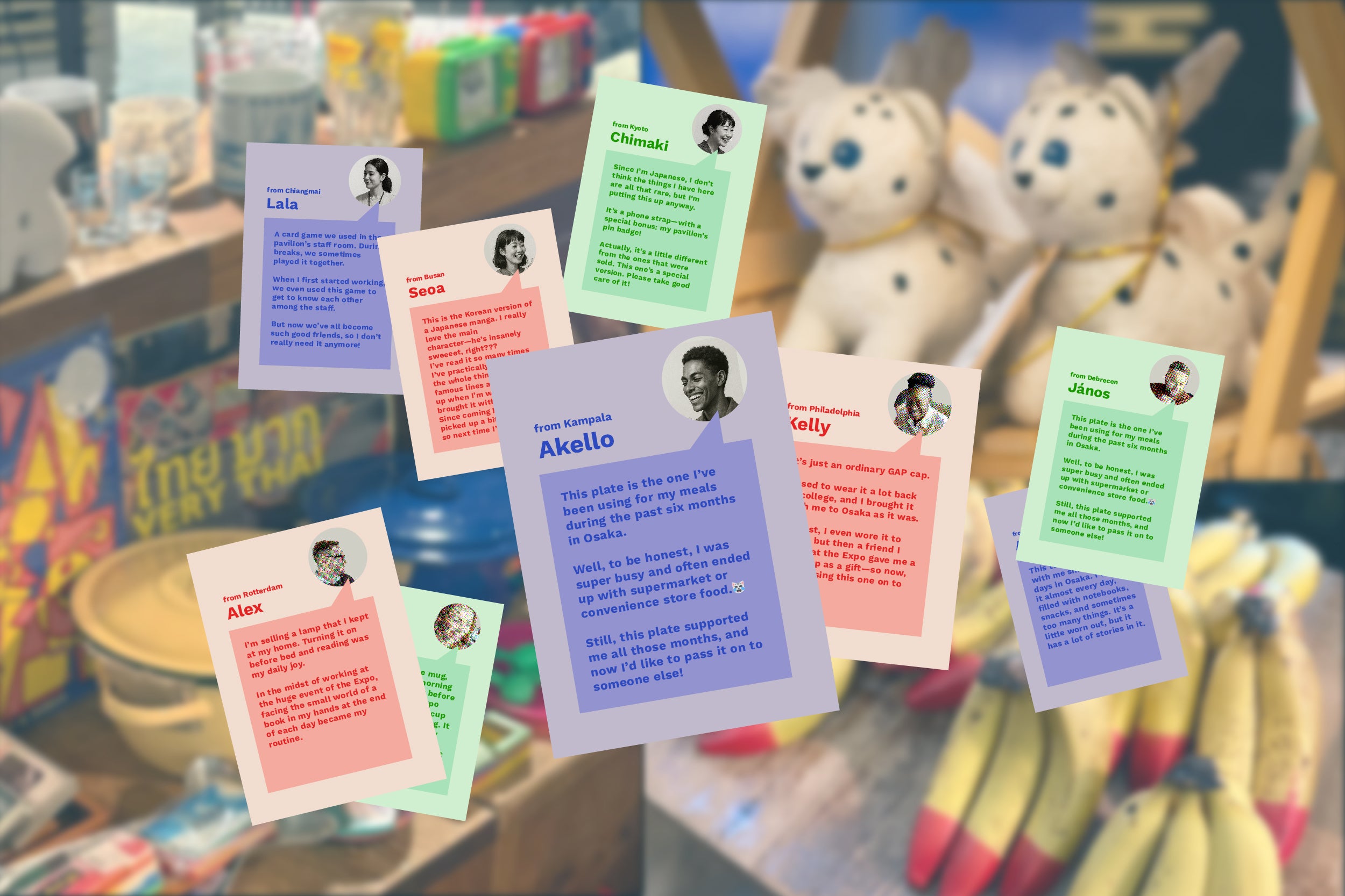 つまり「万博蚤の市」は、万博でのストーリーと共に受け取る、特別なフリーマーケット。どの国からどんな品がやってくるかは、当日のお楽しみ! なお、金銭を交わせないものについては、抽選会で来場者に届けます。