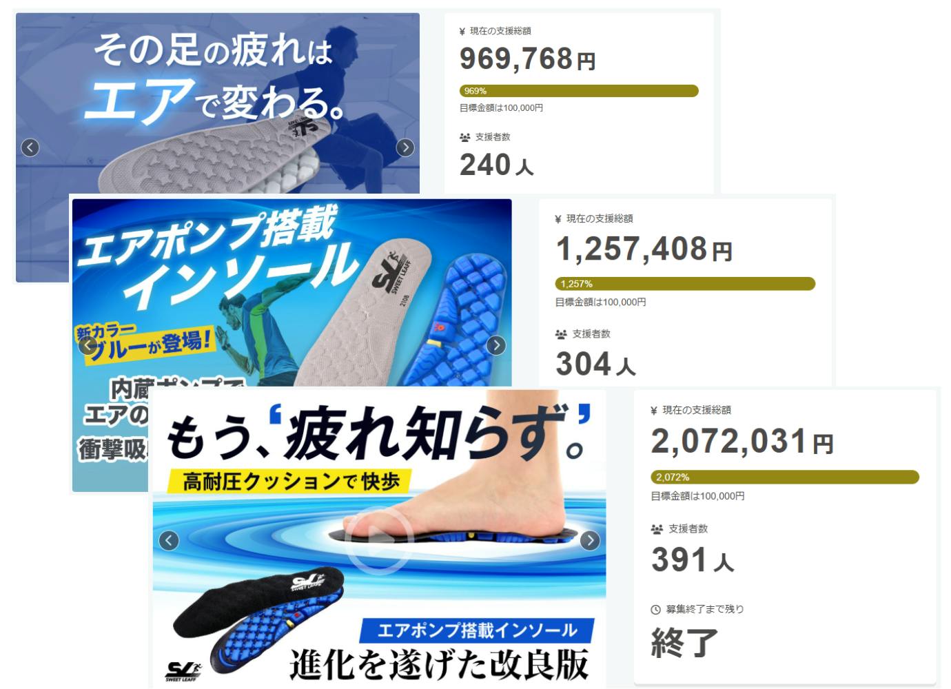 これまでmachi-yaで3度にわたり、エアポンプ搭載インソールのプロジェクトを実施。