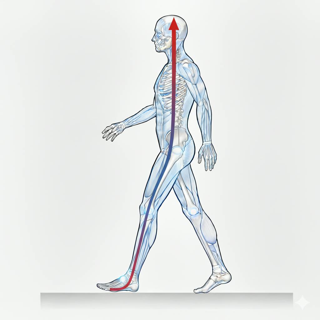 なぜ、私たちは長時間立ったり歩いたりすると、足だけでなく身体全体に負担感があるのでしょうか?