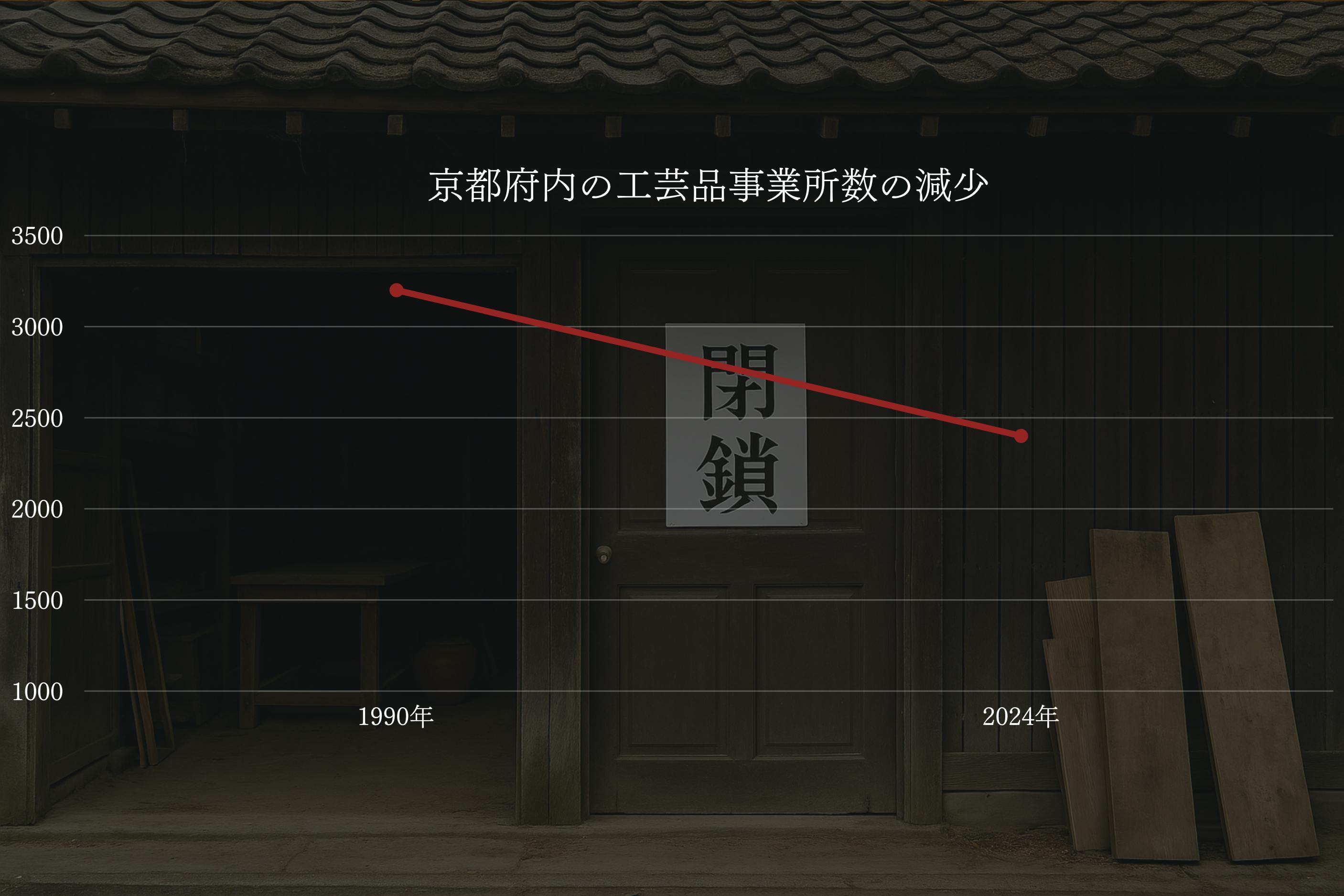 [グラフ: 京都府内の工芸品事業所数の減少]