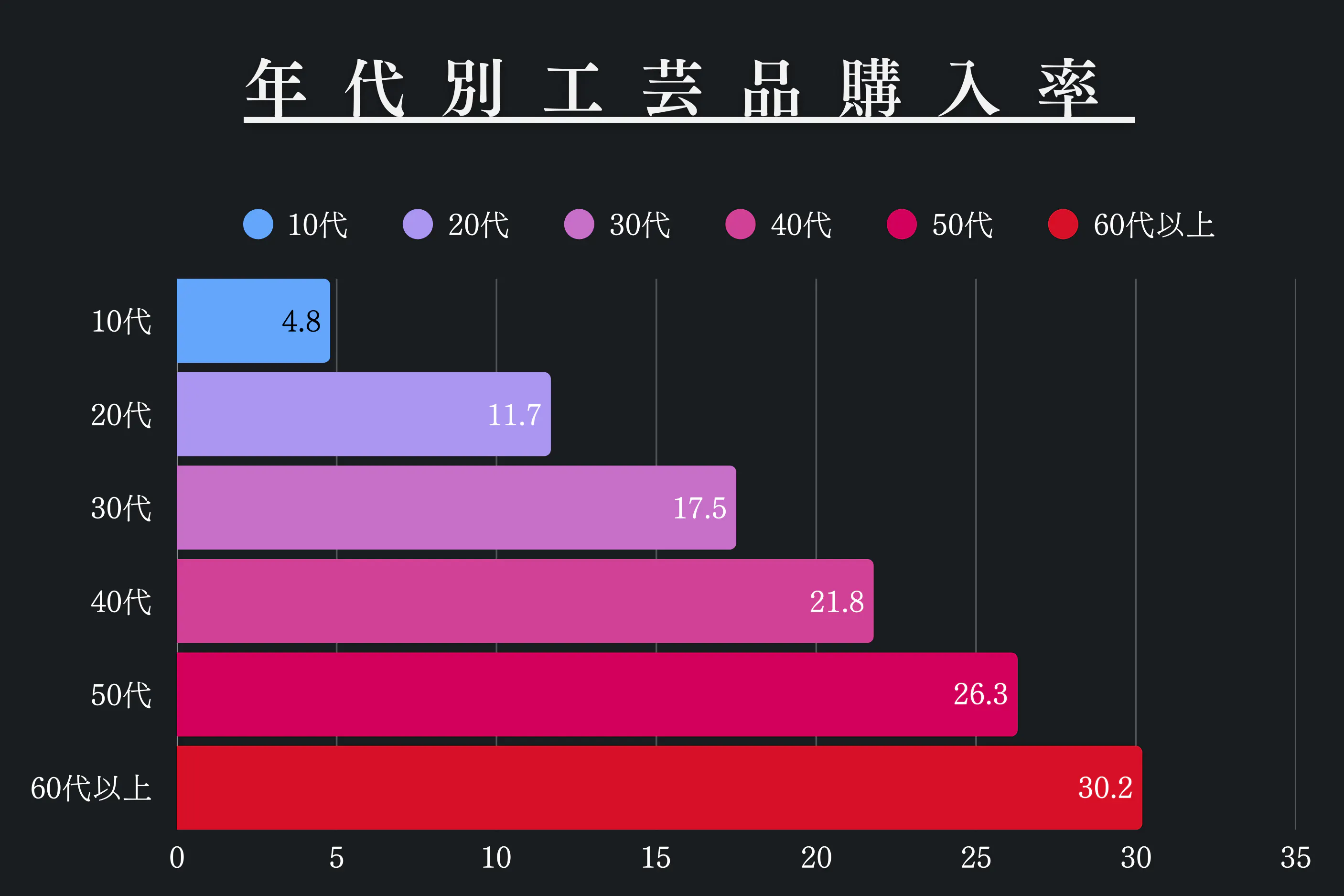 - 若年層の工芸品離れ(20代の購入経験者:わずか12%)