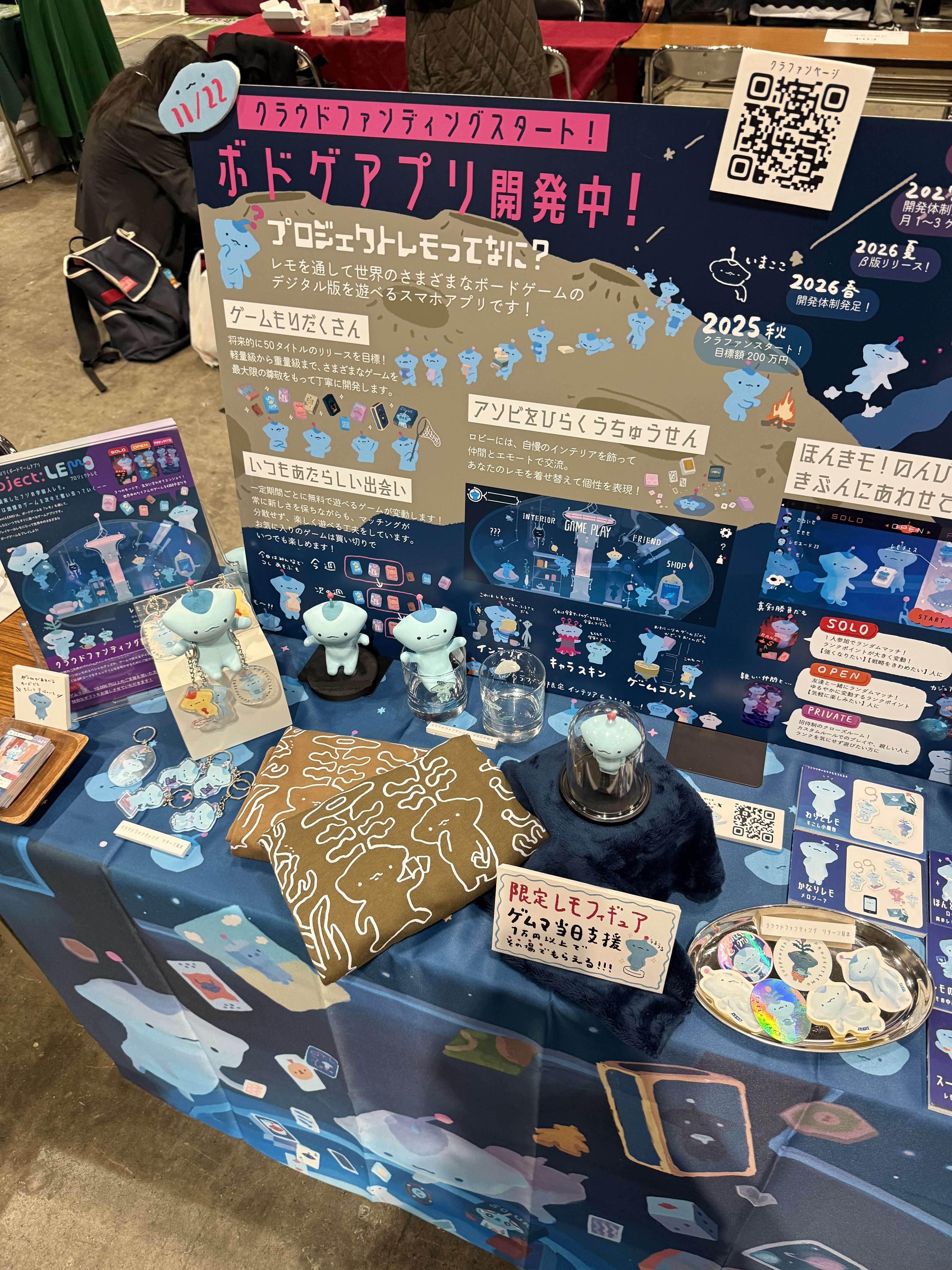 今回のイベントではボードゲームの販売ではなく、ファンディングを募る形式として出展させていただきました。それにもかかわらず数多くの人にレモを知ってもらい、レモの世界の一部を伝えることができました。