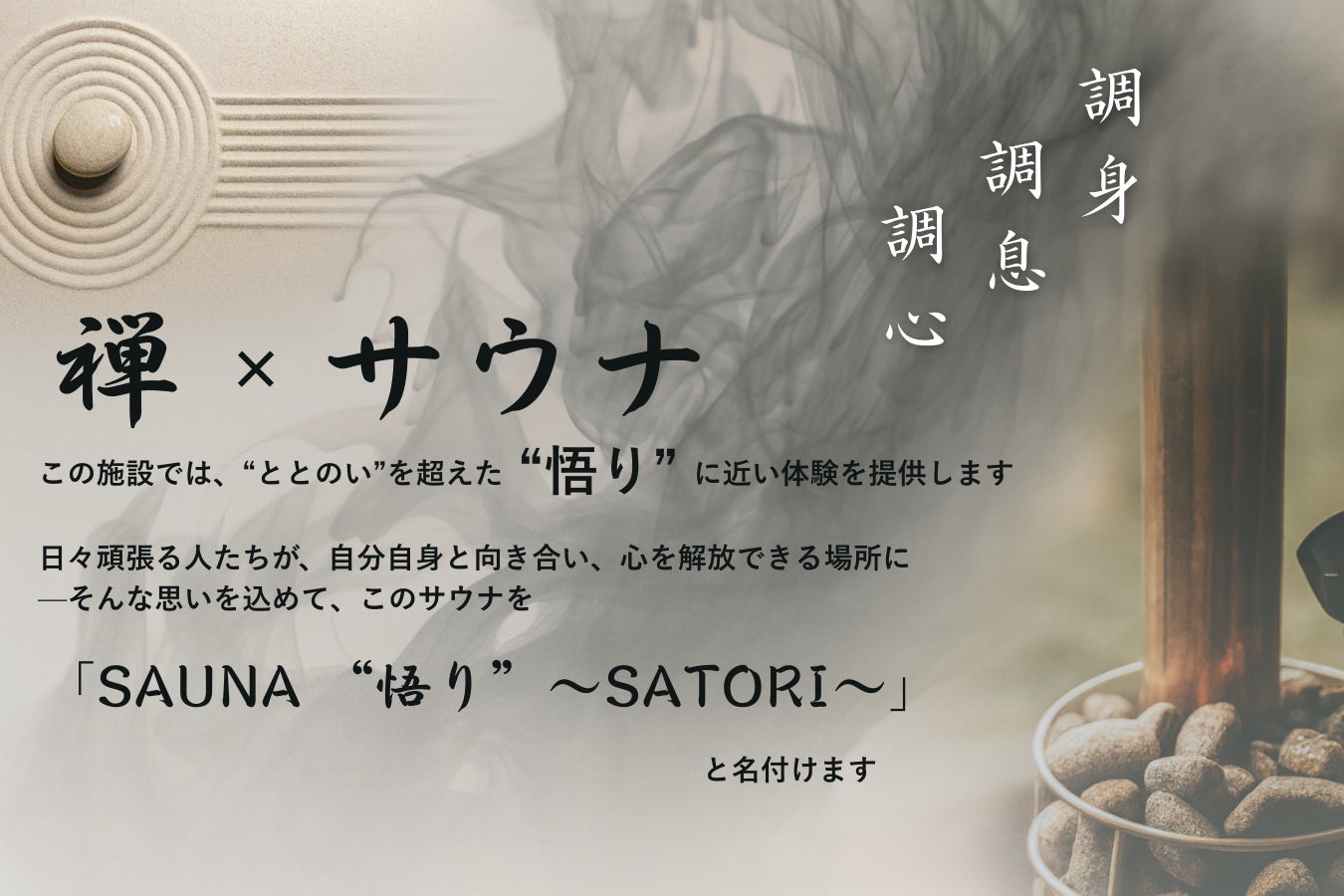 これらを融合させ、“ととのい”を超えた“悟り”の体験ができるサウナ施設をつくります。