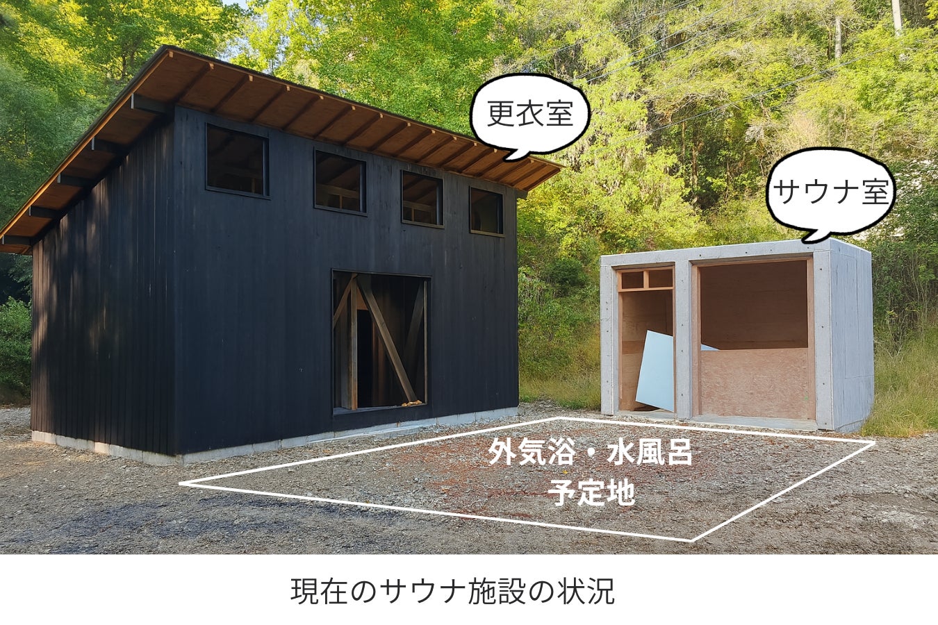 現在、サウナ施設は自己資金で既にできるところまでの建設を進めており、