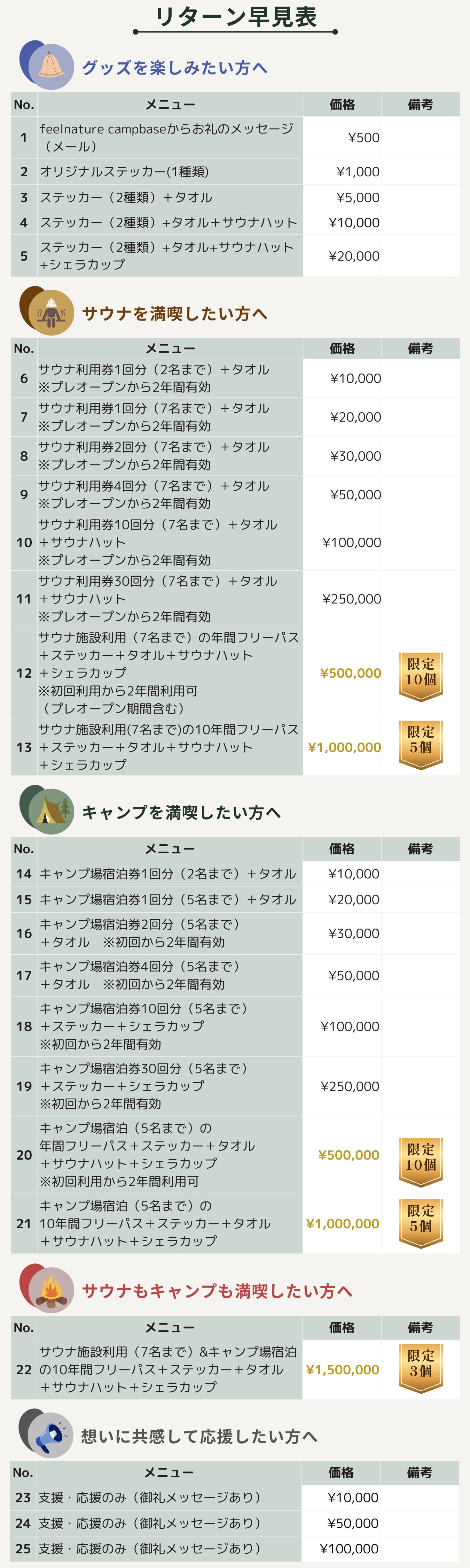 ※サウナ及びキャンプ場の利用券は予約サイトよりご予約ください。現地で無料にさせていただきます。(一般のお客様より優先される権利ではございません。)