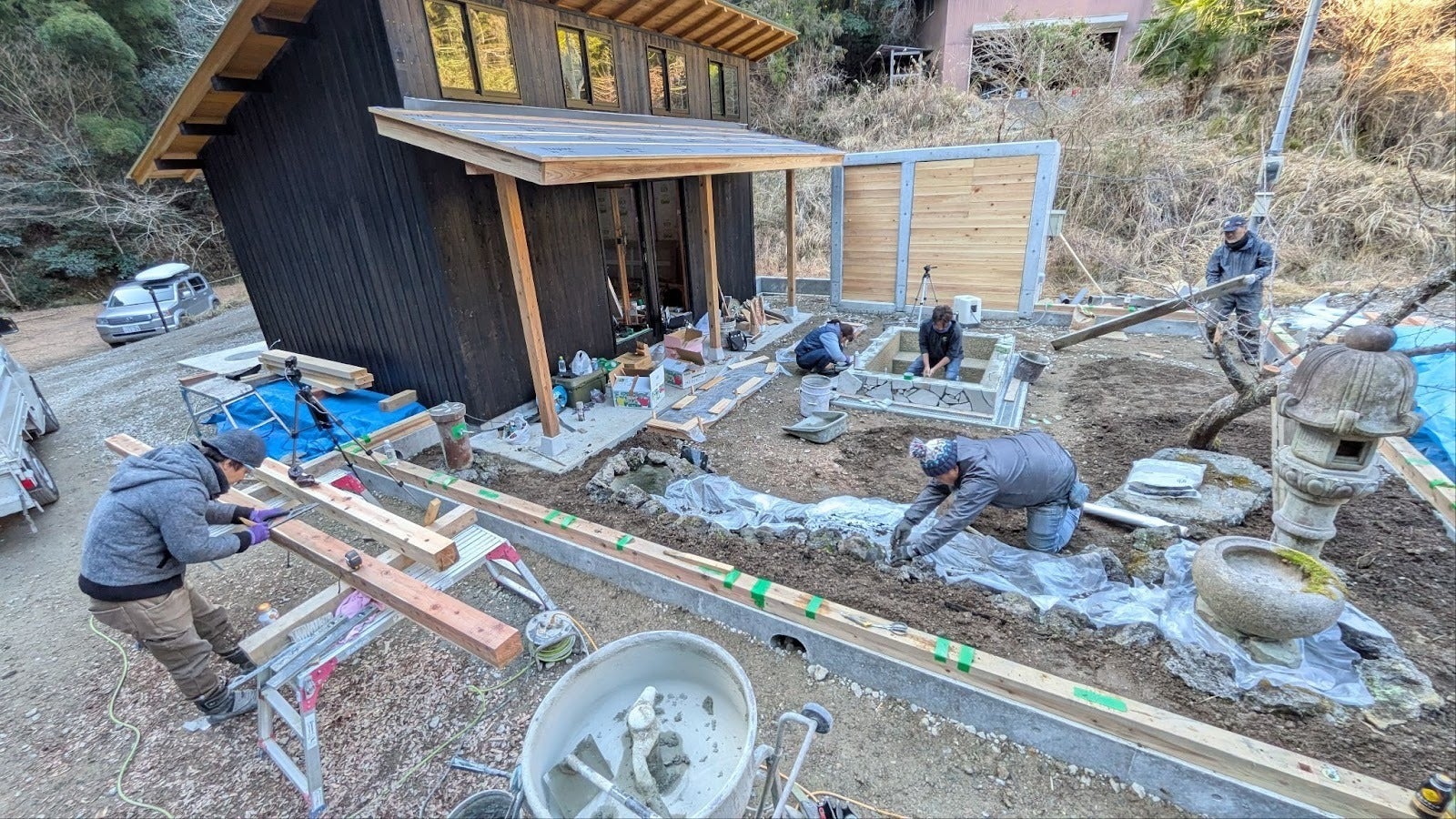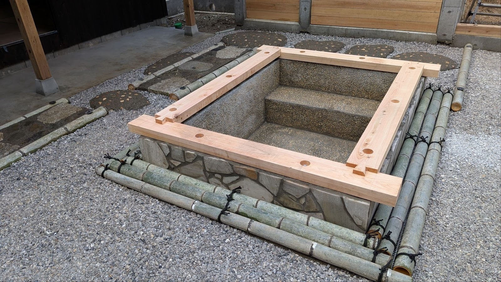残すは、 更衣室の内装、サウナ室の内装、空間全体を囲む塀の施工です。