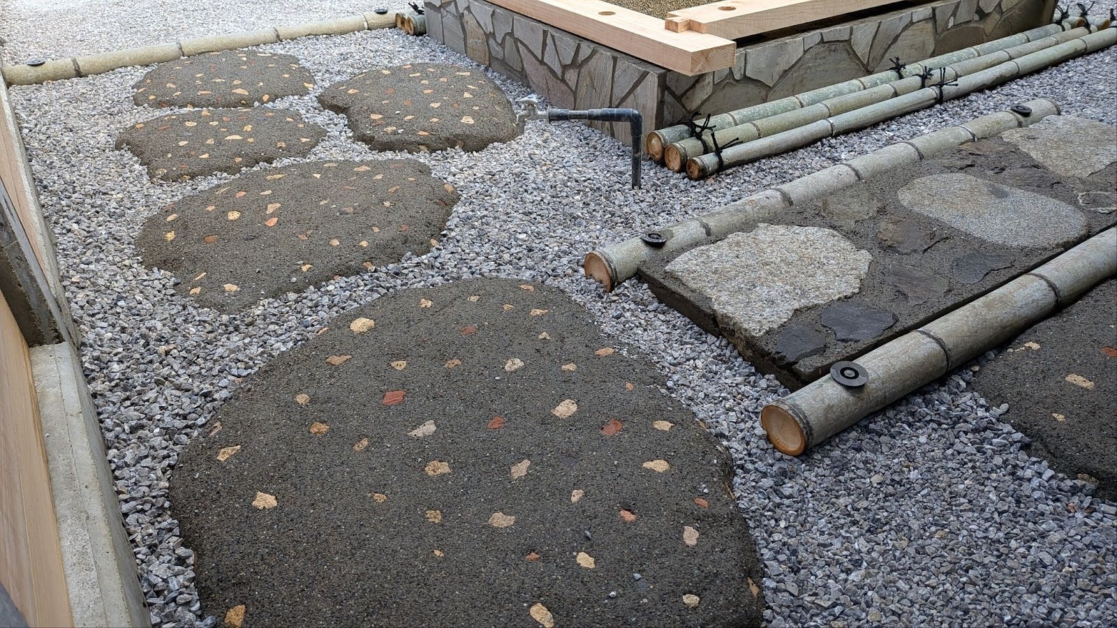 足元には、延段(のべだん)や飛び石を配置し、 一歩一歩、自然と歩みが整う動線が作られています。