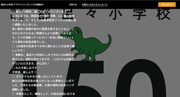 都呂々小学校ホームページ…クラウドファンディング特設ページに,ご支援いただいた方々のメッセージページを追加しました!!