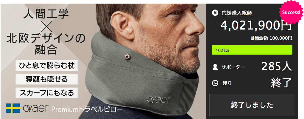 第1弾のネックピローは、大好評の402万円以上のご支援を達成しました。