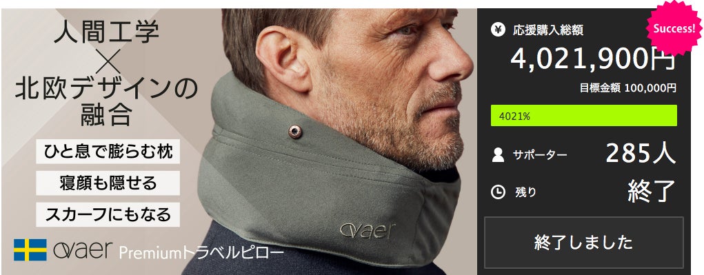第1弾のネックピローは、大好評の402万円以上のご支援を達成しました。