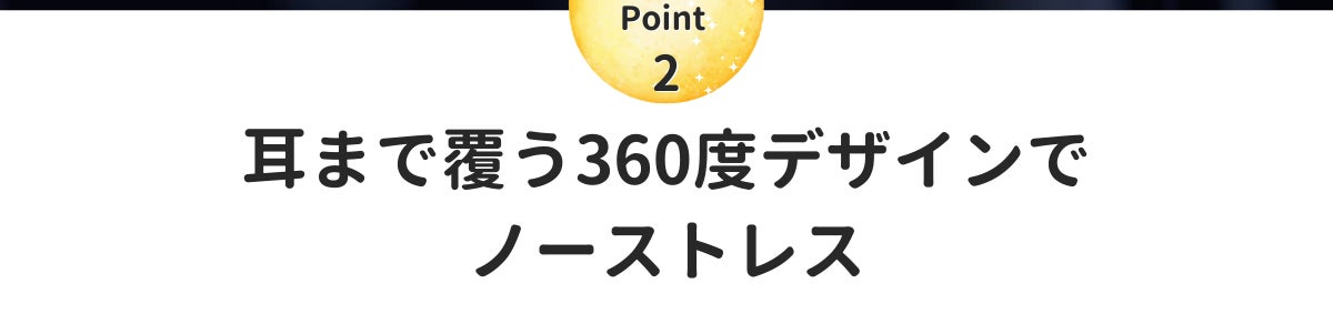 さらに、目〜耳〜後頭部と「360度覆う」ことで、快適なフィット感を実現し、寝ている間もアイマスクがズレにくい。