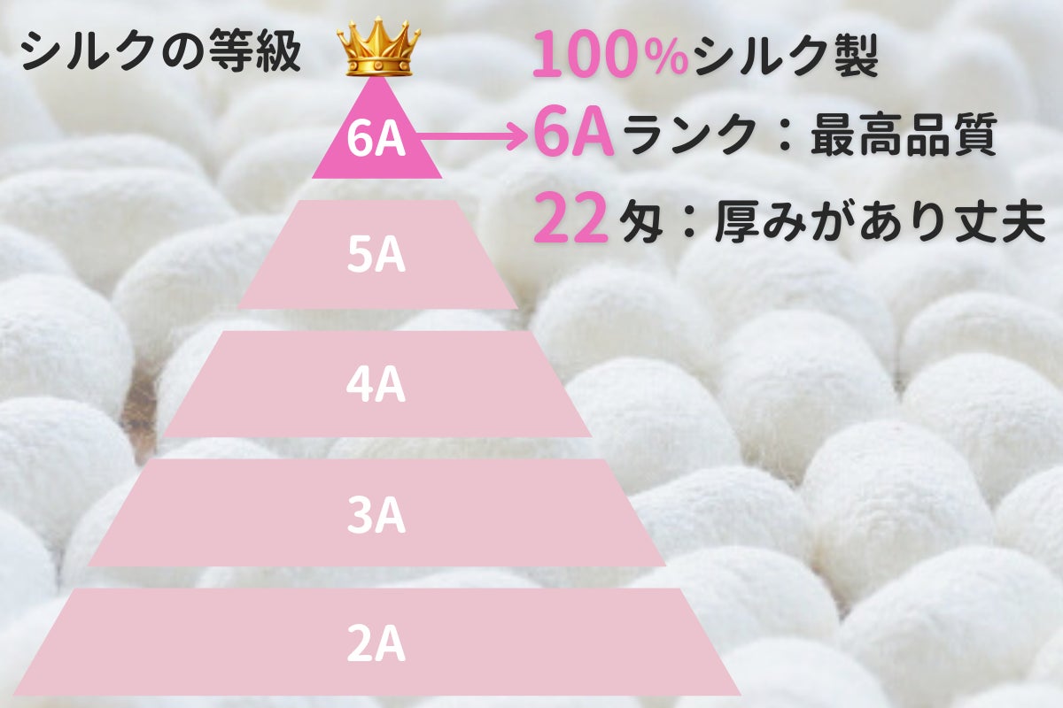 この抜群の着け心地は、品質最上位「6Aランク」かつ「22匁」の絹糸を贅沢に使用しているからこそ実現しました。