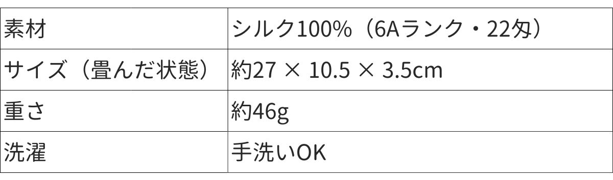 ※「匁」とはシルク生地の重さを表す単位で、どのくらいの量のシルクが使われているかを表します。シャツやスカーフの場合は12匁が目安です。