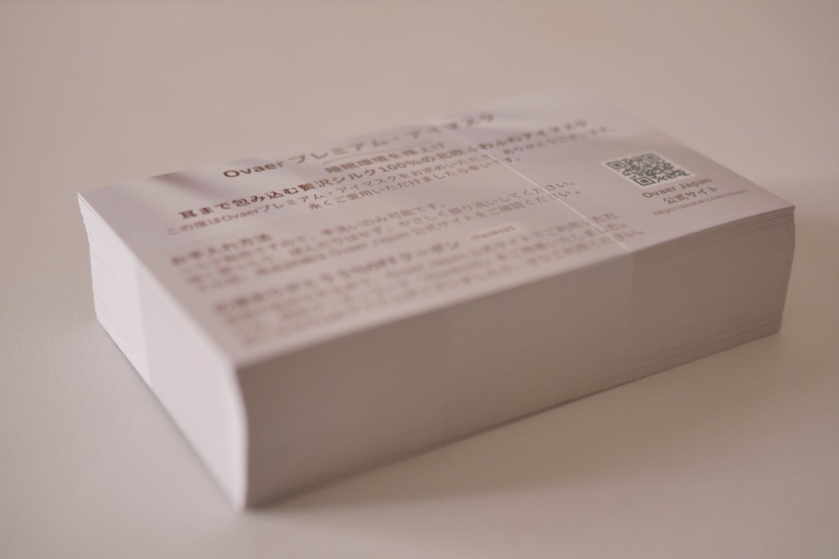 また、Ovaerプレミアム・アイマスクのシルクは、丈夫な仕上がりのシーツなどに用いられることが多い22匁を採用。