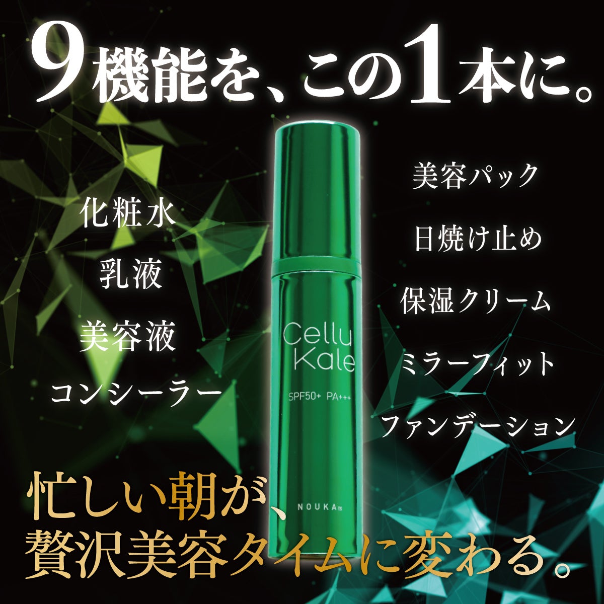 そこでCelluKaleには9つの機能(化粧水、乳液、美容液、保湿クリーム、コンシーラー、日焼け止め、ファンデーション、美容パック、ミラーフィット)を集約させました。