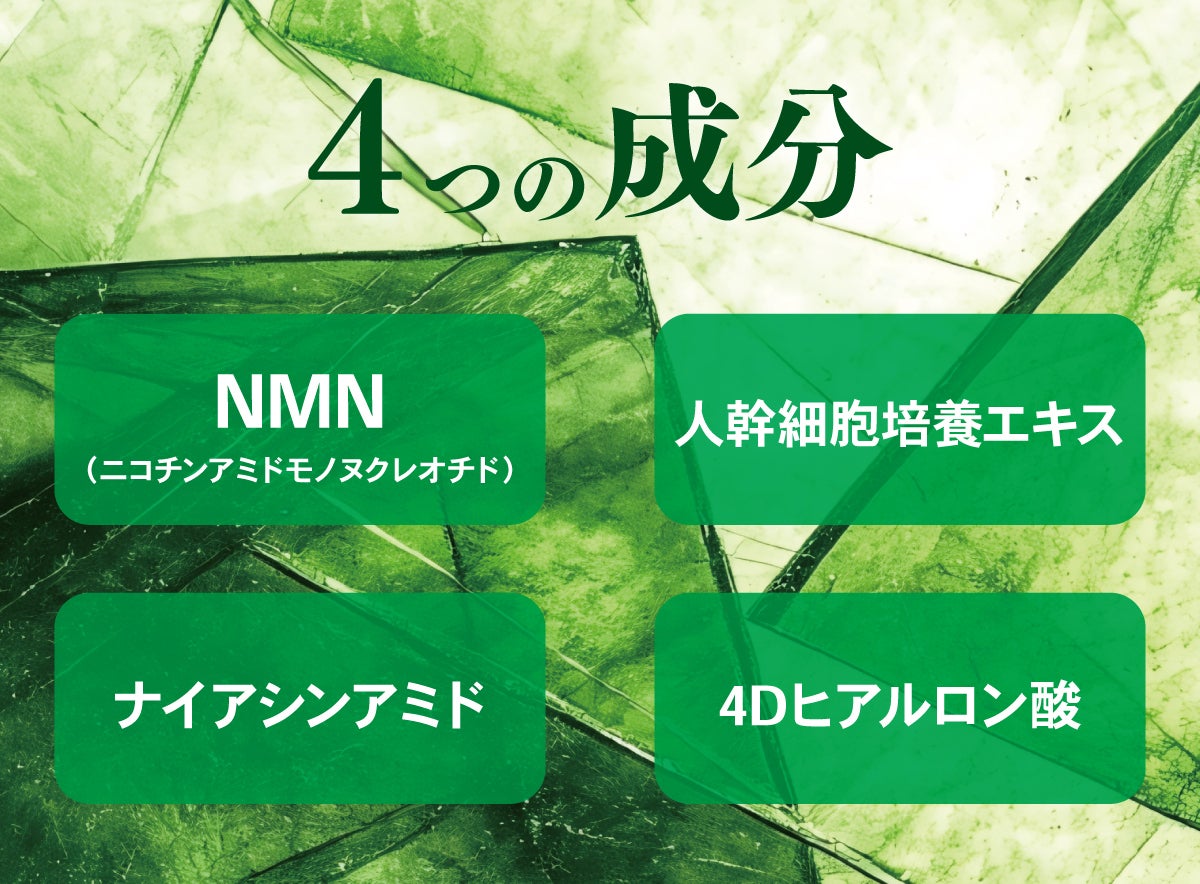 ケールエキスに加え、NMNや人幹細胞培養エキスを配合し、うるおいとハリを与えるスキンケアを実現。年齢を感じやすい肌をすこやかに整え、ツヤのある印象に導きます。