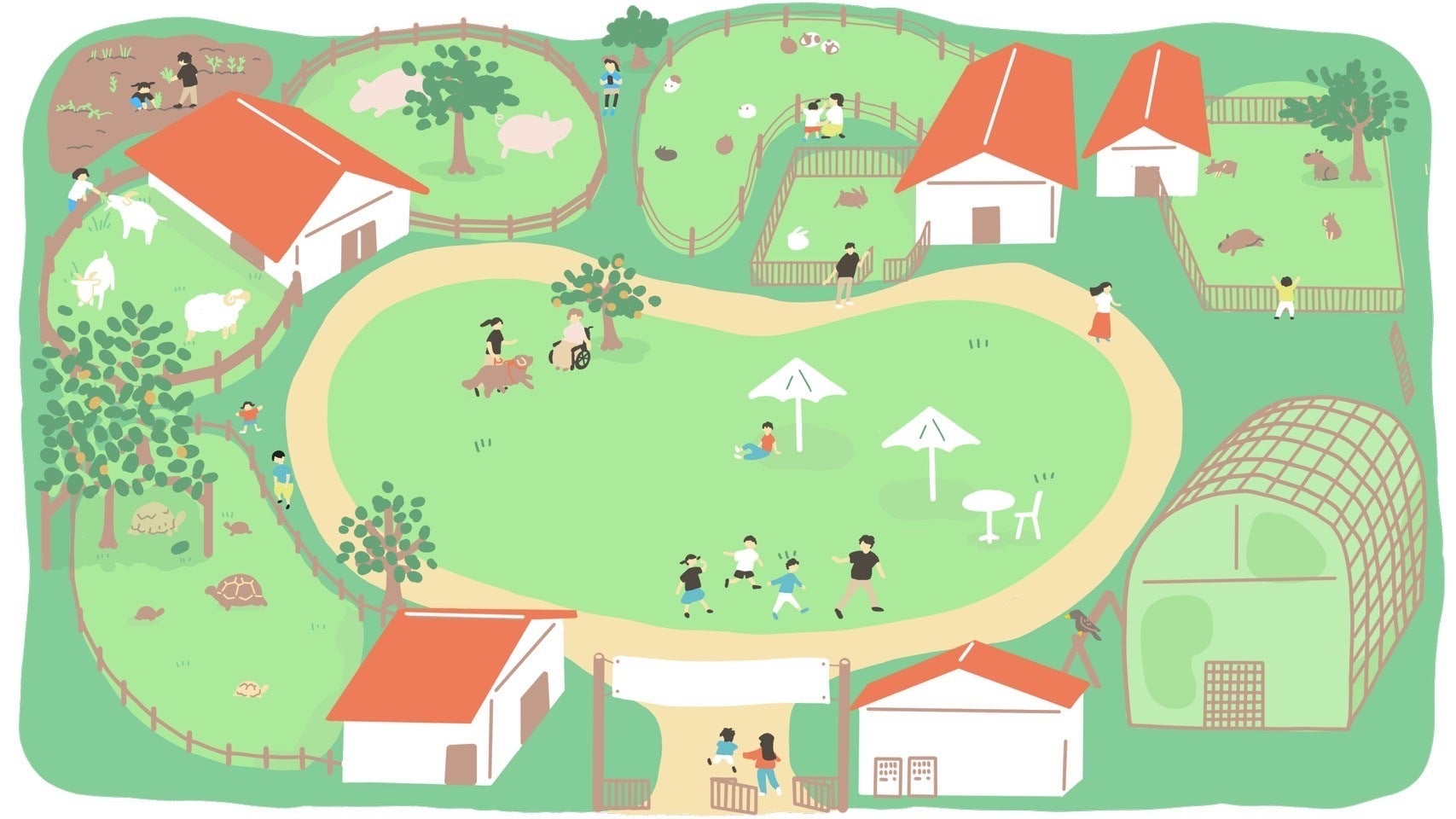 常設のまちの動物園では、見るだけでなく、ふれあいを通して 「学び」「癒し」「循環」 を体験できる施設を目指します。