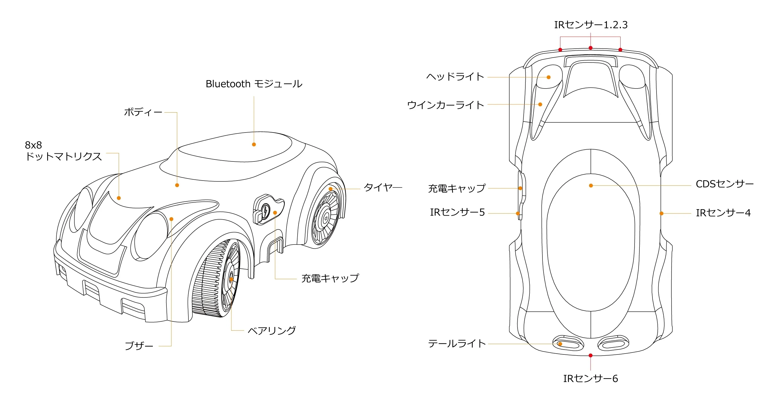 その他の機能としては、専用のアプリケーションOrchestra(オーケストラ)では、『デバイス検索、デバイスの状況をリアルタイムで確認できる機能、ステアリングの調整、赤外線センサーの初期化』機能があります。