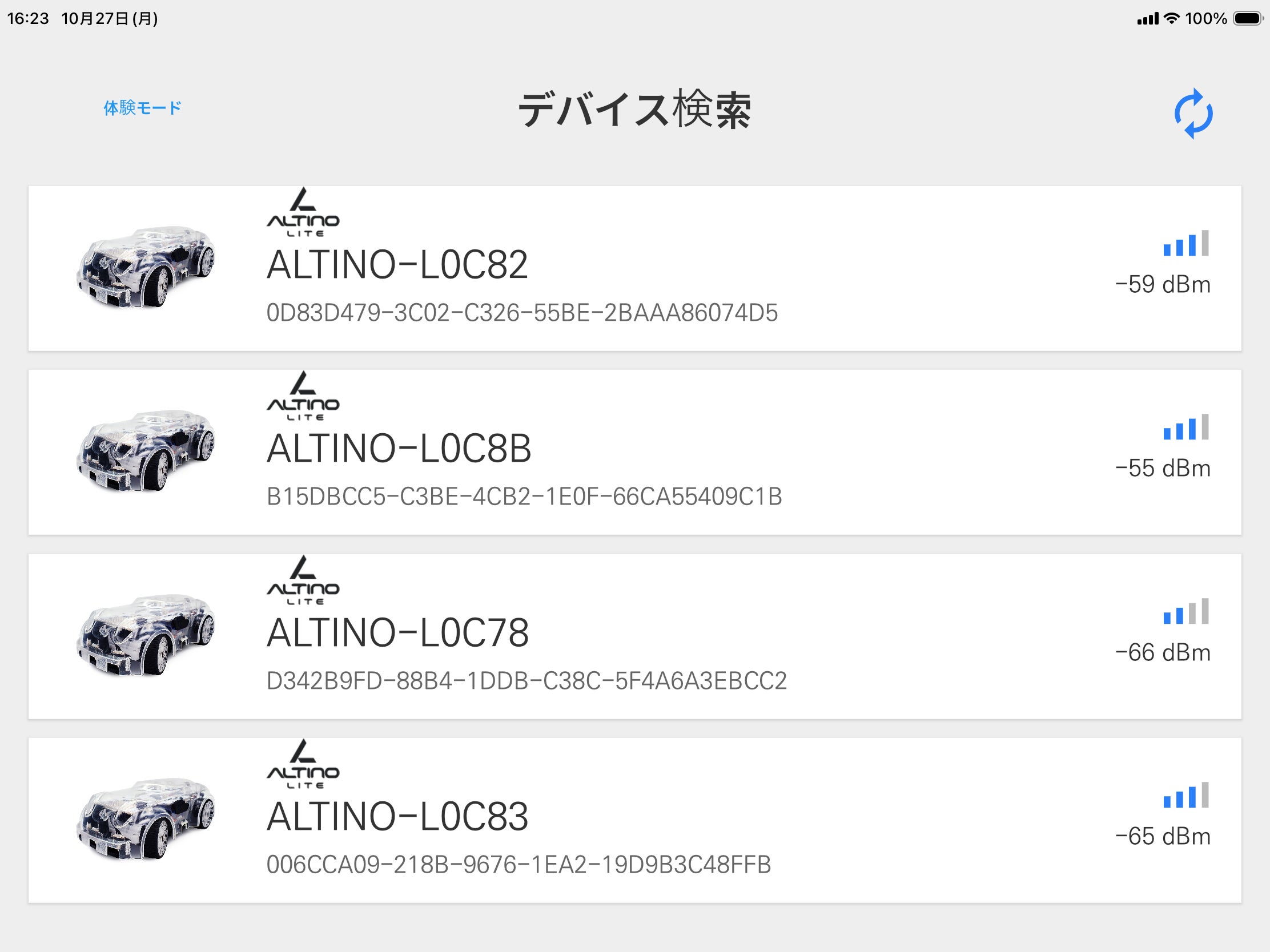 ALTINO LITEの電源がONになっているデバイスを検索し画面に表示されます。接続したいデバイスをタップします。ALTINO LITEのシリアル番号は本体裏側に印字されています。
