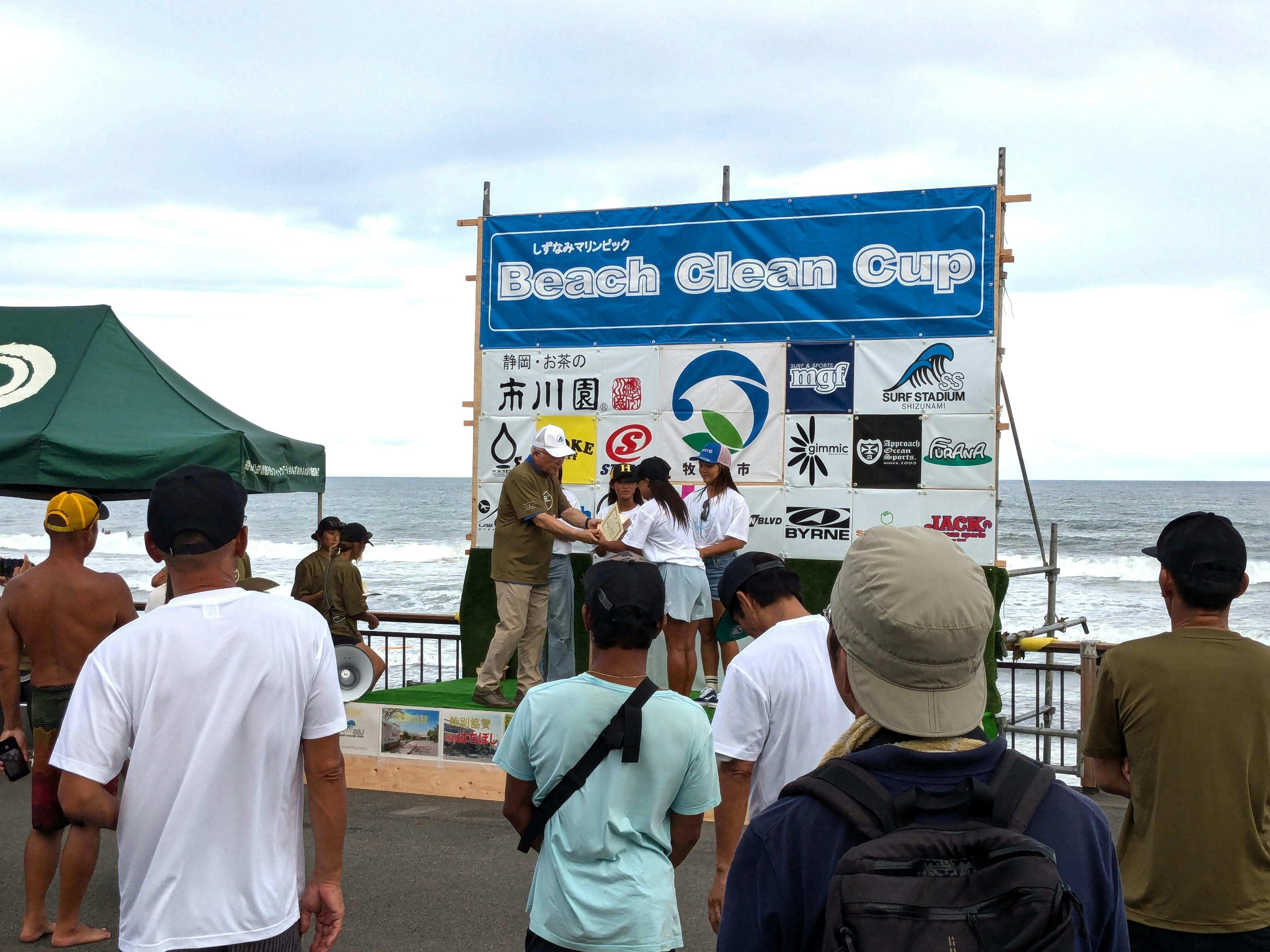 2024年ビーチクリーンカップ。プレゼンターは杉本牧之原市長