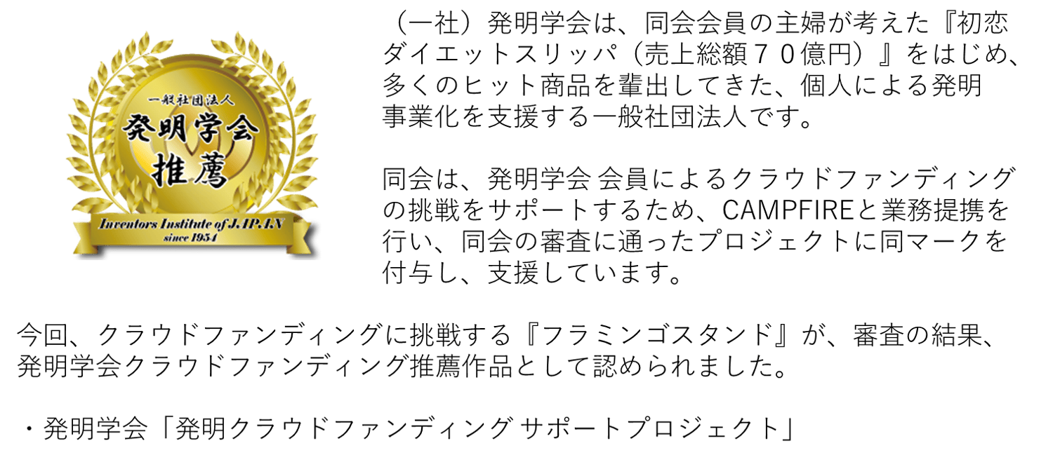 さらに、一般社団法人 発明学会の推奨をいただきました!