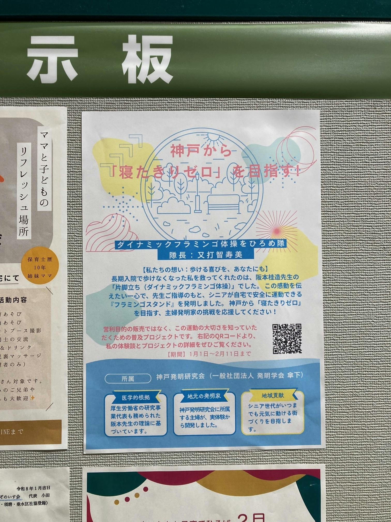このプロジェクトを通じて私が掲げている「神戸から寝たきりゼロを目指す」という想い。 今回、そのキャッチフレーズに深く共感していただき、掲示を快諾してくださいました。