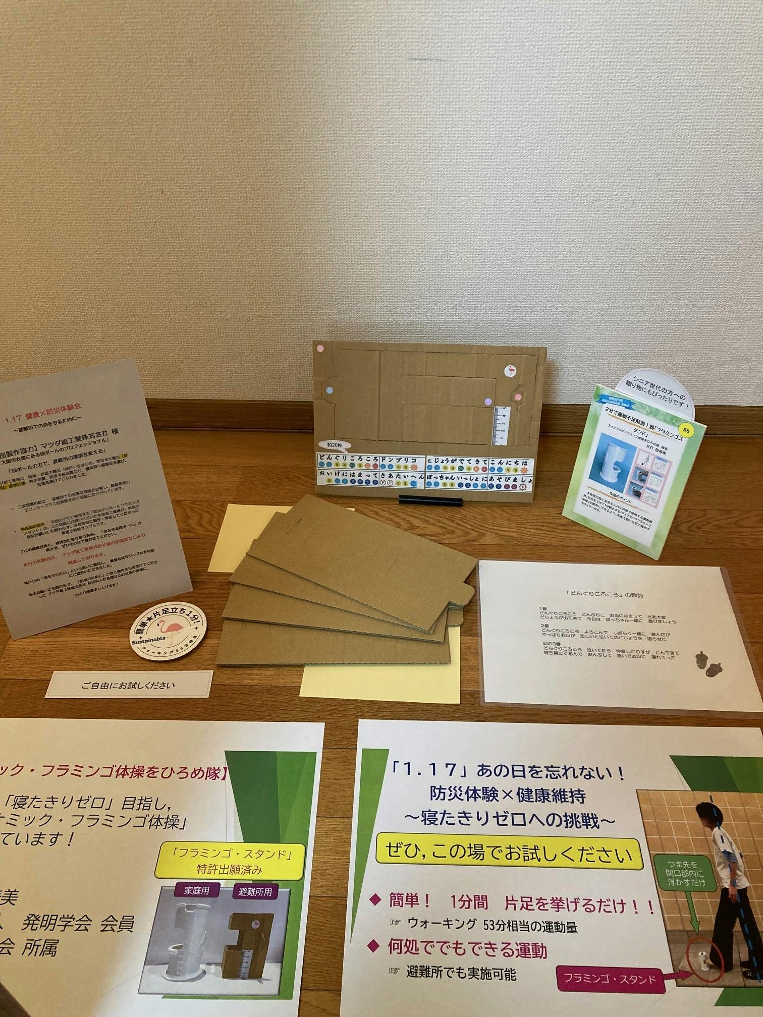 ◆避難所での命を守る「避難所用ダンボール・フラミンゴ・スタンド」組み立てデモ