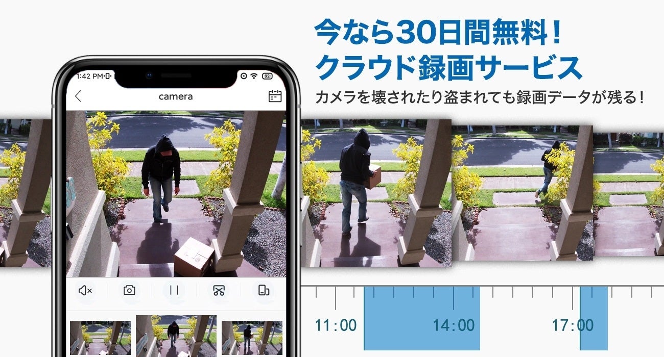 クラウド録画機能により重要な映像を安全に保存しいつでもどこからでもアクセスできます。録画された映像は、高いセキュリティレベルで保護され、データの損失や破損の心配がありません。さらに、クラウドを利用することでカメラ本体に保存容量の制限がなくなり長期間の映像記録が可能です。